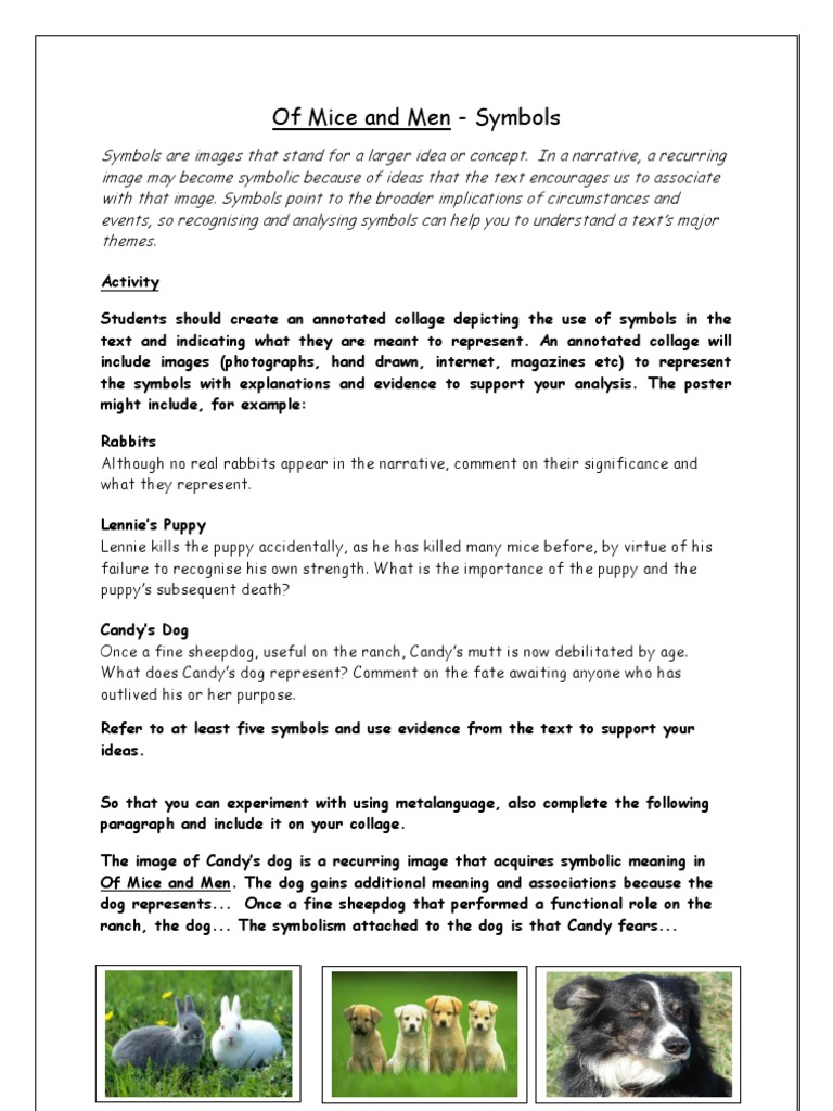 . One reason George can be. The days-old puppy symbolizes the. It was Steinbeck himself that originally remarked that Lennie was meant to represent the inarticulate and powerful yearning of all men In the context of the setting it is clear that.